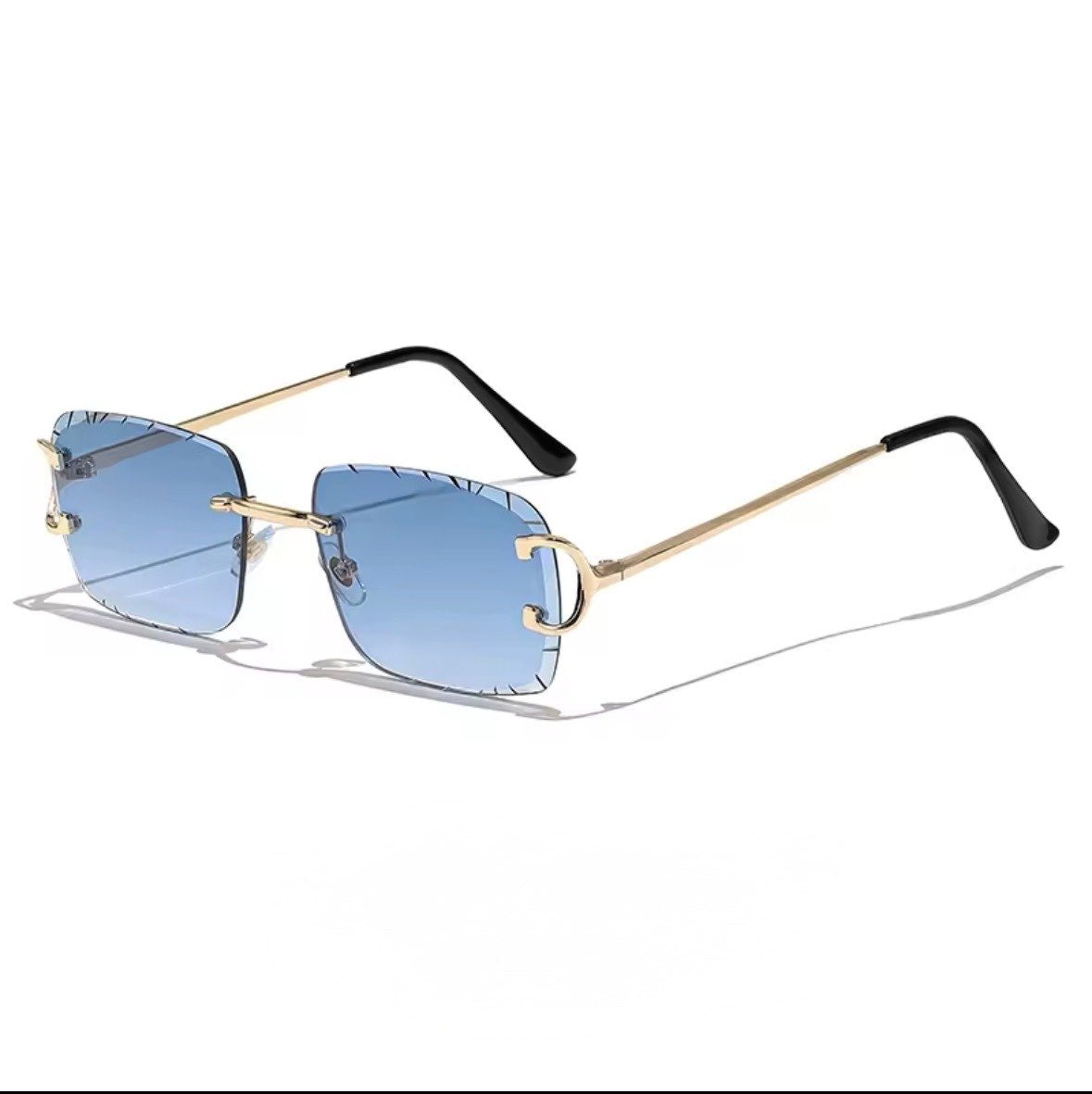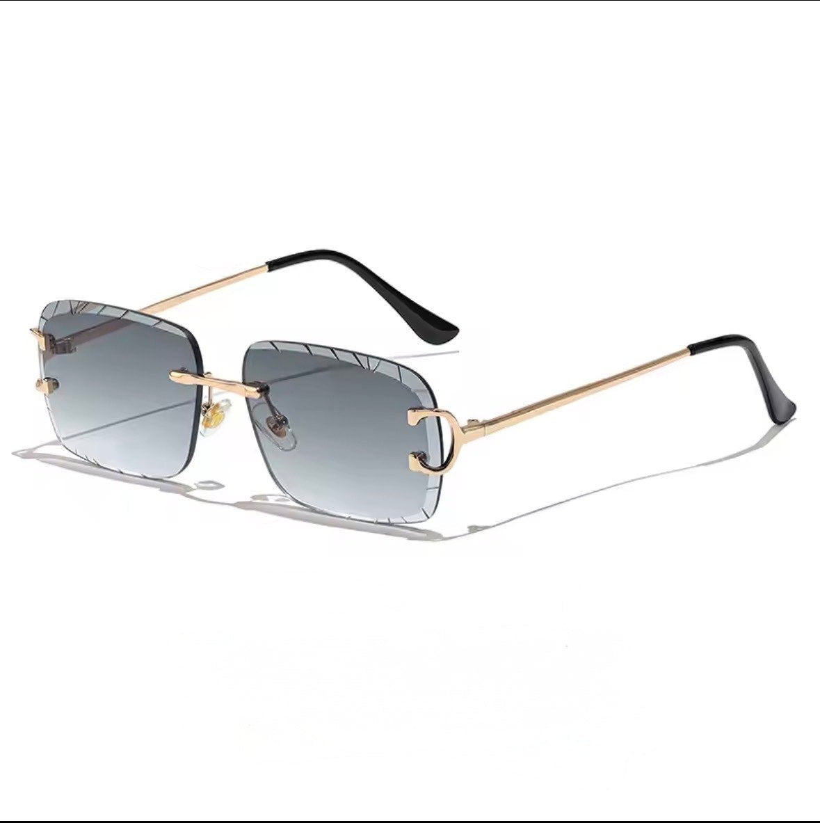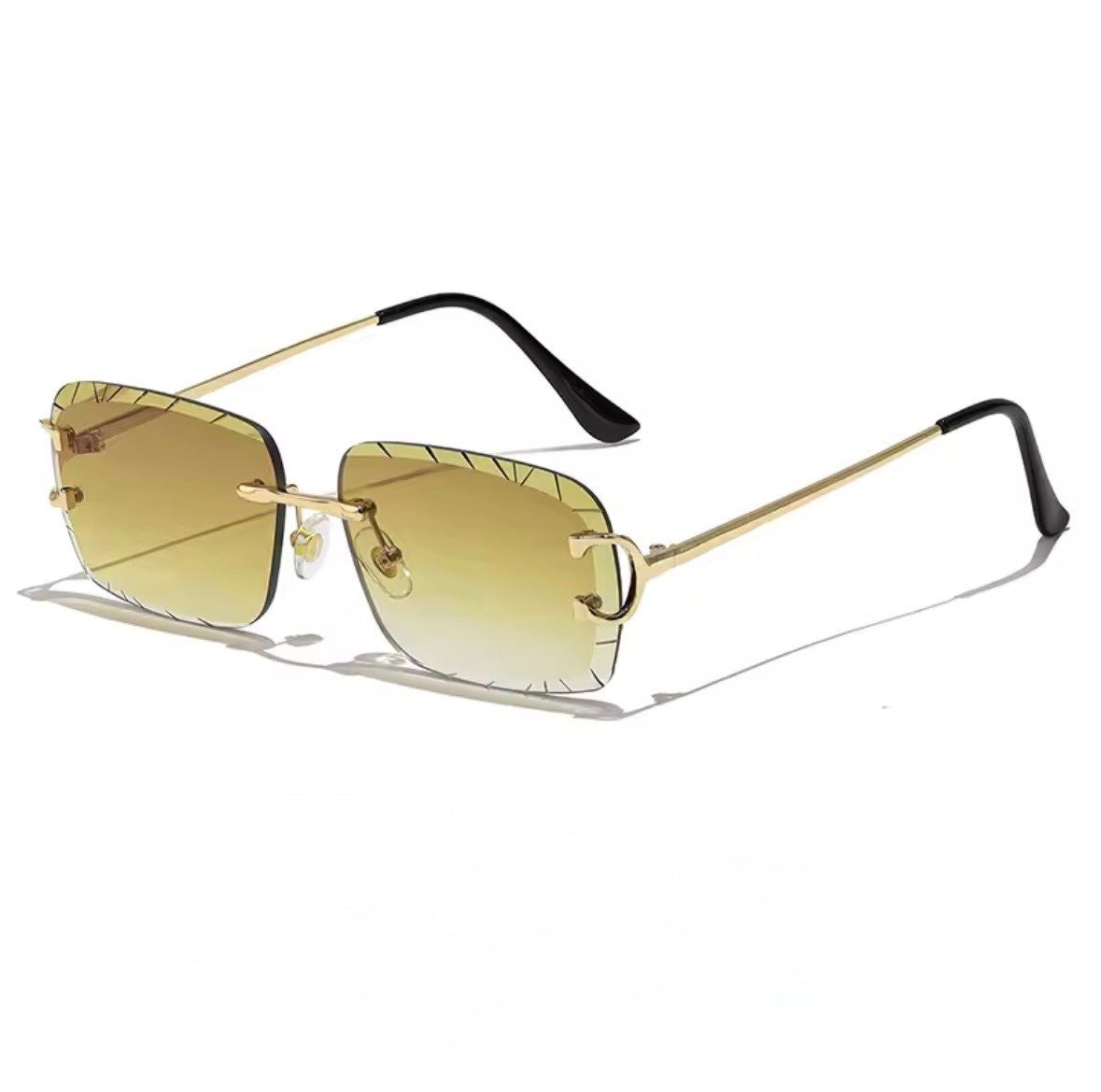 Dotées de verres rectangulaires sans contour et d’une monture fine dorée, elles allient élégance contemporaine et caractère affirmé.